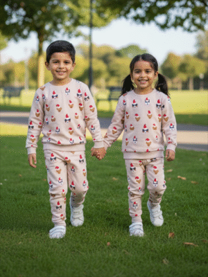 Unisex Beige Cotton Printed Full Sleeve Co-ord Sets