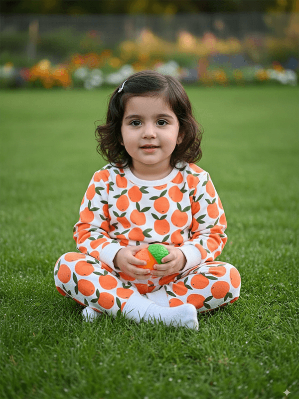 Unisex Cotton Orange Print Full Sleeve Co-ord Sets