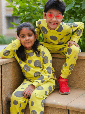 Unisex Yellow Cotton Printed Full Sleeve Co-ord Sets