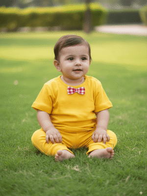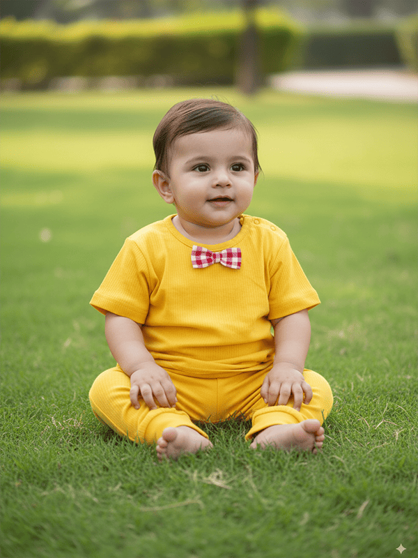 Solid Yellow Newborn Toddler Cotton Sets with Bow