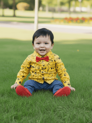 Smiley Print Yellow Shirt Pant Bow Sets
