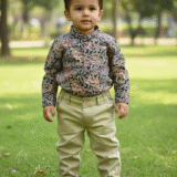 Traditional Kalamkari shirt paired with comfy khaki pants — breathable, stylish and perfect for birthdays, photoshoots, festive events or special outings.