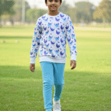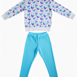 Fun hen-print sweatshirt with cozy waffle-knit joggers — soft, breathable and perfect for playful days, lounging or mix-and-match styling.